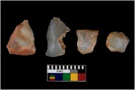 | Description / विवरण | There are n 4 of utilized worked cores. They show multidirectional irregular scar pattern. Two are tapering at one end and are elongated in shape. One is having a flat base. All are having sharp edges. |