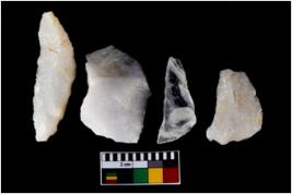 | Description / विवरण | There are n 4 flake cores. All of them are fully fluted flake cores without any trace of crested ridge flakes. Some are tapering at one end and few have sharp edges. |
