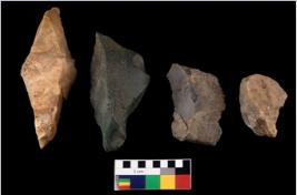 | Description / विवरण | There are n 4 of utilized worked cores. There are multidirectional irregular dominant scar pattern on both dorsal and ventral side. Some are tapering at one end. |
