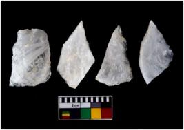 | Description / विवरण | There are n 4 flake cores. All of them are fully fluted flake cores without any trace of crested ridge flakes. Some are tapering at one end and few have sharp edges. |