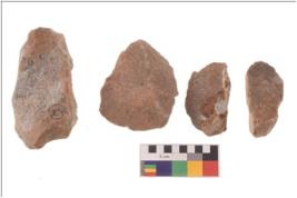 | Description / विवरण | There are n 4 utilized flakes; there are multi- directional irregular scar pattern on both dorsal and ventral face of the flakes. |