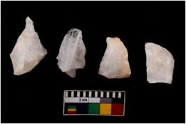 | Description / विवरण | There are n 4 flake cores. All of them are fully fluted flake cores without any trace of crested ridge flakes. Some are tapering at one end and few have sharp edges. |