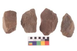 | Description / विवरण | There are n 4 of utilized worked flakes. There are multidirectional irregular dominant scar pattern on both dorsal and ventral face of the flakes. Three of them are tapering at one end. All are having sharp edges. |