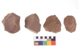 | Description / विवरण | There are n 4 of utilized worked flakes. There are multidirectional irregular dominant scar pattern on both dorsal and ventral face of the flakes. Two of them are tapering at one end. All are having sharp edges. |