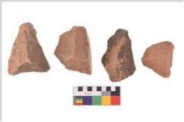 | Description / विवरण | There are n 4 utilized flakes; there are multi- directional irregular scar pattern on both dorsal and ventral face of the flakes. Most of them are having sharp edges. |