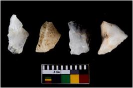 | Description / विवरण | There are n 4 flake cores. All of them are fully fluted flake cores without any trace of crested ridge flakes. Some are tapering at one end and some have blunted edges. |