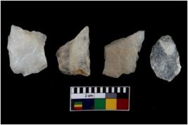 | Description / विवरण | There are n 4 flake cores. All of them are fully fluted flake cores without any trace of crested ridge flakes. Two have flat base whereas some have pointed edges. |