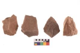 | Description / विवरण | There are n 4 of utilized worked flakes. There are multidirectional irregular dominant scar pattern on both dorsal and ventral face of the flakes. Three of them are tapering at one end. All are having sharp edges. |