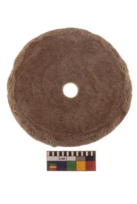 | Description / विवरण | Specimen of a perforated disc; it is made of well levigated clay, reddish in colour. It is having smooth texture. |