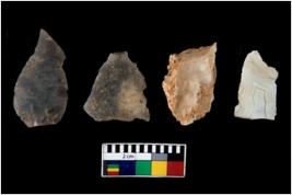 | Description / विवरण | There are n 4 of utilized worked cores; three are of chalcedony and one is of quartz. They show multidirectional irregular scar pattern. Three are tapering at one end and are elongated in shape. |