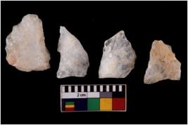 | Description / विवरण | There are n 4 flake cores. All of them are fully fluted flake cores without any trace of crested ridge flakes. Some are tapering at one end and few have sharp edges. |