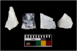 | Description / विवरण | There are n 4 flake cores. All of them are fully fluted flake cores without any trace of crested ridge flakes. Some are tapering at one end and some have blunted edges. |