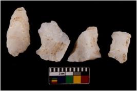 | Description / विवरण | There are n 4 flake cores. All of them are fully fluted flake cores without any trace of crested ridge flakes. Some are tapering at one end and few have sharp edges. |