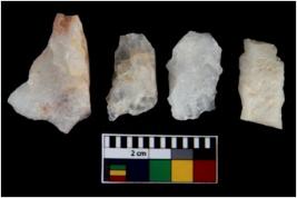| Description / विवरण | There are n 4 flake cores. All of them are fully fluted flake cores without any trace of crested ridge flakes. Two have flat base whereas some have pointed edges. |