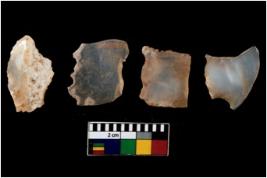 | Description / विवरण | There are n 4 of utilized worked cores. They show multidirectional irregular scar pattern. One is tapering at one end and are elongated in shape. All are having sharp edges. |
