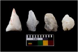 | Description / विवरण | There are n 4 flake cores. All of them are fully fluted flake cores without any trace of crested ridge flakes. Some are tapering at one end and few have sharp edges. |