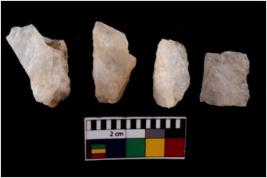 | Description / विवरण | There are n 4 flake cores. All of them are fully fluted flake cores without any trace of crested ridge flakes. Some are tapering at one end and few have sharp edges. |