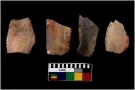 | Description / विवरण | There are n 4 of utilized worked cores. They show multidirectional irregular scar pattern. Two are tapering at one end and are elongated in shape. Two are having sharp edges. All are having sharp edges. |