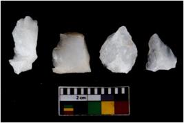 | Description / विवरण | There are n 4 flake cores. All of them are fully fluted flake cores without any trace of crested ridge flakes. Some are tapering at one end and some have blunted edges. |