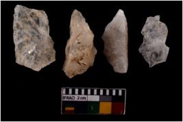 | Description / विवरण | There are n 4 flake cores. All of them are fully fluted flake cores without any trace of crested ridge flakes. Some are tapering at one end and few have sharp edges. |