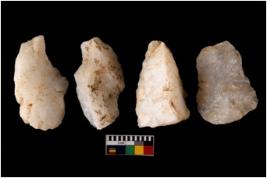| Description / विवरण | There are n 4 flake cores. All of them are fully fluted flake cores without any trace of crested ridge flakes. Some are tapering at one end and some have sharp edges. |