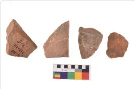 | Description / विवरण | There are n 4 utilized flakes; there are multi- directional irregular scar pattern on both dorsal and ventral face of the flakes. Most of them are having sharp edges. |