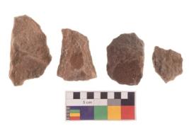 | Description / विवरण | There are n 4 of utilized worked flakes. There are multidirectional irregular dominant scar pattern on both dorsal and ventral face of the flakes. Two of them are tapering at one end. All are having sharp edges. |