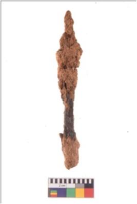 | Description / विवरण | Fragment of Iron; it is slender and elongated in shape and highly corroded. |