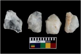 | Description / विवरण | There are n 4 flake cores. All of them are fully fluted flake cores without any trace of crested ridge flakes. Two have flat base whereas some have pointed edges. |