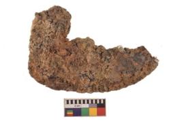 | Description / विवरण | Specimen with curved flat body having uniform thickness with one turned end and thickly corroded surface. |