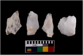 | Description / विवरण | There are n 4 flake cores. All of them are fully fluted flake cores without any trace of crested ridge flakes. Some are tapering at one end and few have sharp edges. |