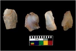 | Description / विवरण | There are n 4 of utilized worked cores. They show multidirectional irregular scar pattern. Three are tapering at one end and are elongated in shape. One is having a flat base. All are having sharp edges. |