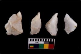 | Description / विवरण | There are n 4 flake cores. All of them are fully fluted flake cores without any trace of crested ridge flakes. Some are tapering at one end and few have sharp edges. |