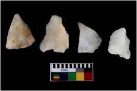 | Description / विवरण | There are n 4 flake cores. All of them are fully fluted flake cores without any trace of crested ridge flakes. Two have flat base whereas some have pointed edges. |