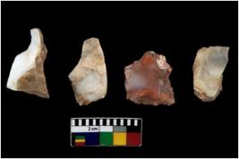 | Description / विवरण | There are n 4 of utilized worked cores. They show multidirectional irregular scar pattern. Two are tapering at one end and are elongated in shape. All are having sharp edges. |