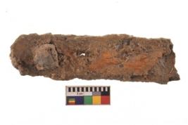 | Description / विवरण | Specimen having flat body with uniform thickness and small perforation on its surface and thickly corroded surface. |