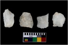 | Description / विवरण | There are n 4 flake cores. All of them are fully fluted flake cores without any trace of crested ridge flakes. Two have flat base whereas some have pointed edges. |