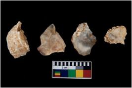 | Description / विवरण | There are n 4 of utilized worked cores. They show multidirectional irregular scar pattern. Three are tapering at one end and are elongated in shape. All are having sharp edges. |