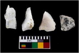 | Description / विवरण | There are n 4 flake cores. All of them are fully fluted flake cores without any trace of crested ridge flakes. Some are tapering at one end and few have sharp edges. |