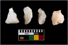| Description / विवरण | There are n 4 flake cores. All of them are fully fluted flake cores without any trace of crested ridge flakes. Some are tapering at one end and some have blunted edges. |