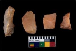 | Description / विवरण | There are n 4 of utilized worked cores. They show multidirectional irregular scar pattern. Three are tapering at one end and are elongated in shape. One is having a flat base. All are having sharp edges. |