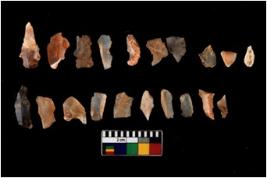 | Description / विवरण | There are n 20 of utilized worked core flakes.They show multi-directional irregular scar pattern. Some are tapering on one end. |