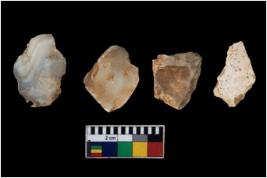 | Description / विवरण | There are n 4 of utilized worked cores. They show multidirectional irregular scar pattern. Three are tapering at one end and are elongated in shape. One is having a flat base. |