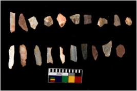 | Description / विवरण | There are n 20 of utilized worked core flakes.They show multi-directional irregular scar pattern. Some are tapering on one end. |