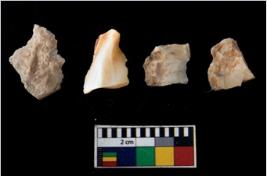 | Description / विवरण | There are n 4 of utilized worked cores. They show multidirectional irregular scar pattern. Three are tapering at one end. |