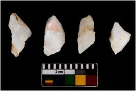 | Description / विवरण | There are n 4 flake cores. All of them are fully fluted flake cores without any trace of crested ridge flakes. Some are tapering at one end and few have sharp edges. |