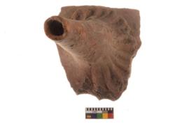 | Description / विवरण | Specimen of a spout with raised geometric decoration. |