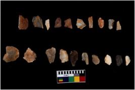 | Description / विवरण | There are n 20 of utilized worked core flakes.They show multi-directional irregular scar pattern. Some are tapering on one end. |