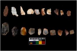 | Description / विवरण | There are n 20 of utilized worked core flakes.They show multi-directional irregular scar pattern. Some are tapering on one end. |