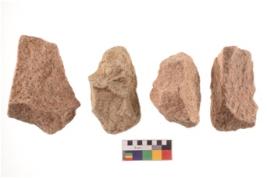 | Description / विवरण | There are n 4 of utilized worked flakes. There are multidirectional irregular dominant scar pattern on both dorsal and ventral face of the flakes. Two of them are tapering at one end. All are having sharp edges. |